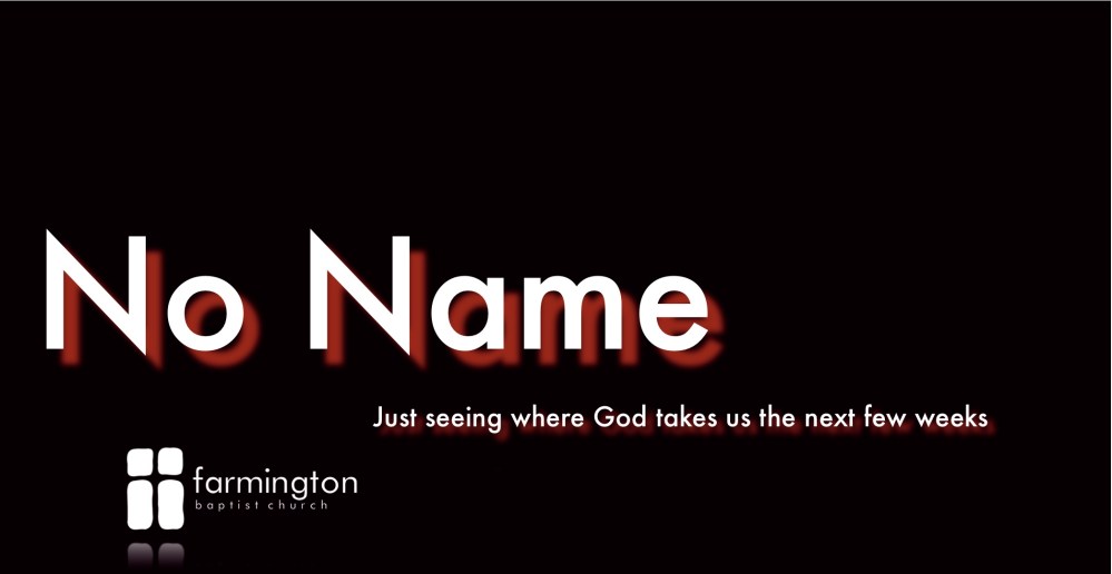 On Mothers day, we will be starting a series called “No Name” with the tag line “Just Seeing where God takes us the Next Few Weeks.”