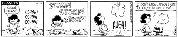 Posted on October 13, 2011October 11, 2011 by Bobvestal I have a Peanuts Daily Calendar, the comics for the last few days have been priceless and I wanted to share them with you… Enjoy! Share this: Click to share on Facebook (Opens in new window) Facebook Click to share on X (Opens in new window) X Click to email a link to a friend (Opens in new window) Email Click to share on Tumblr (Opens in new window) Tumblr Click to share on LinkedIn (Opens in new window) LinkedIn Click to print (Opens in new window) Print Click to share on Reddit (Opens in new window) Reddit Like Loading... Related