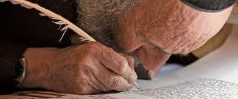 The picture of the scribe you posted with this blog amazes me–can you imagine writing in that stooped position all day long? I have a new appreciation for those men.