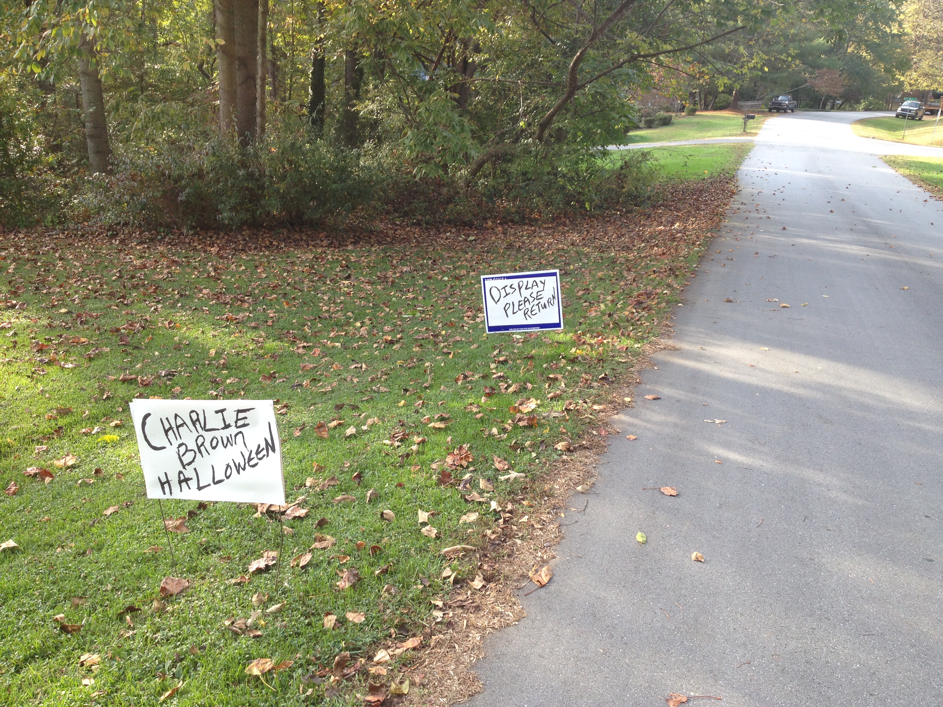 someone snuck onto our property and took our wooden Charlie Brown Halloween display