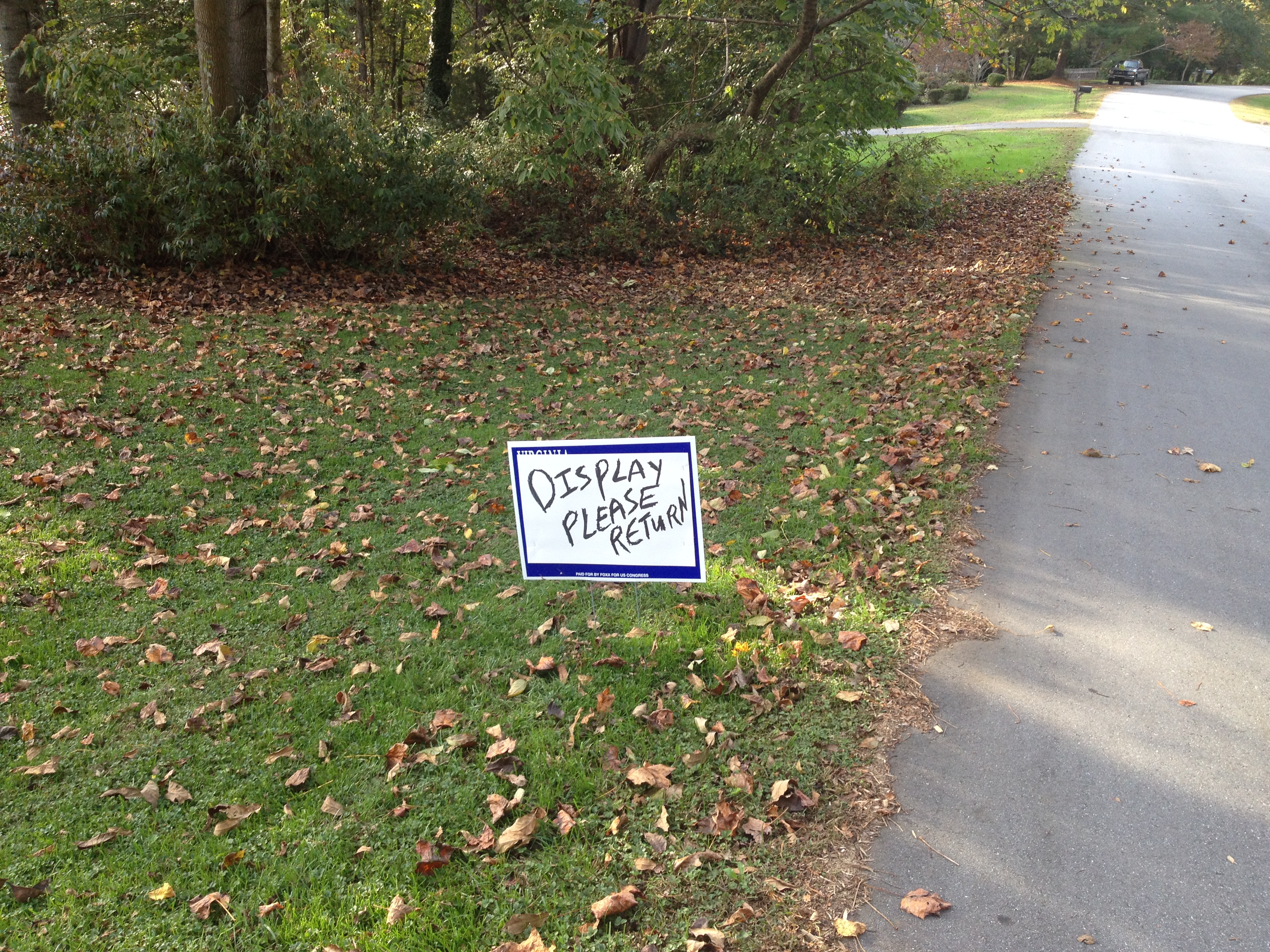 My Neighbor seems to think that I should be nice and instead of using the word “stole” i should be nice and use “Borrowed” instead on these signs….