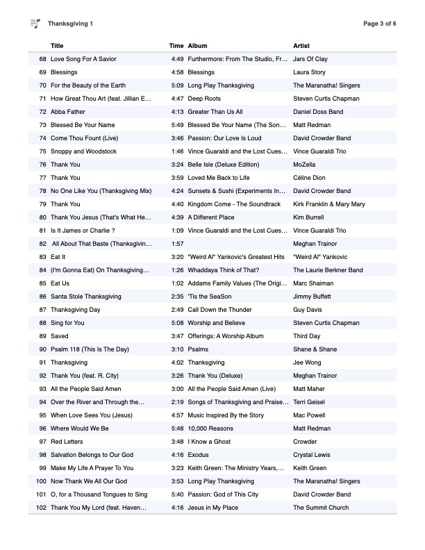 Or if you have Apple Music click below (on Thanksgiving Playlist) and the whole playlist will instantly be yours! –